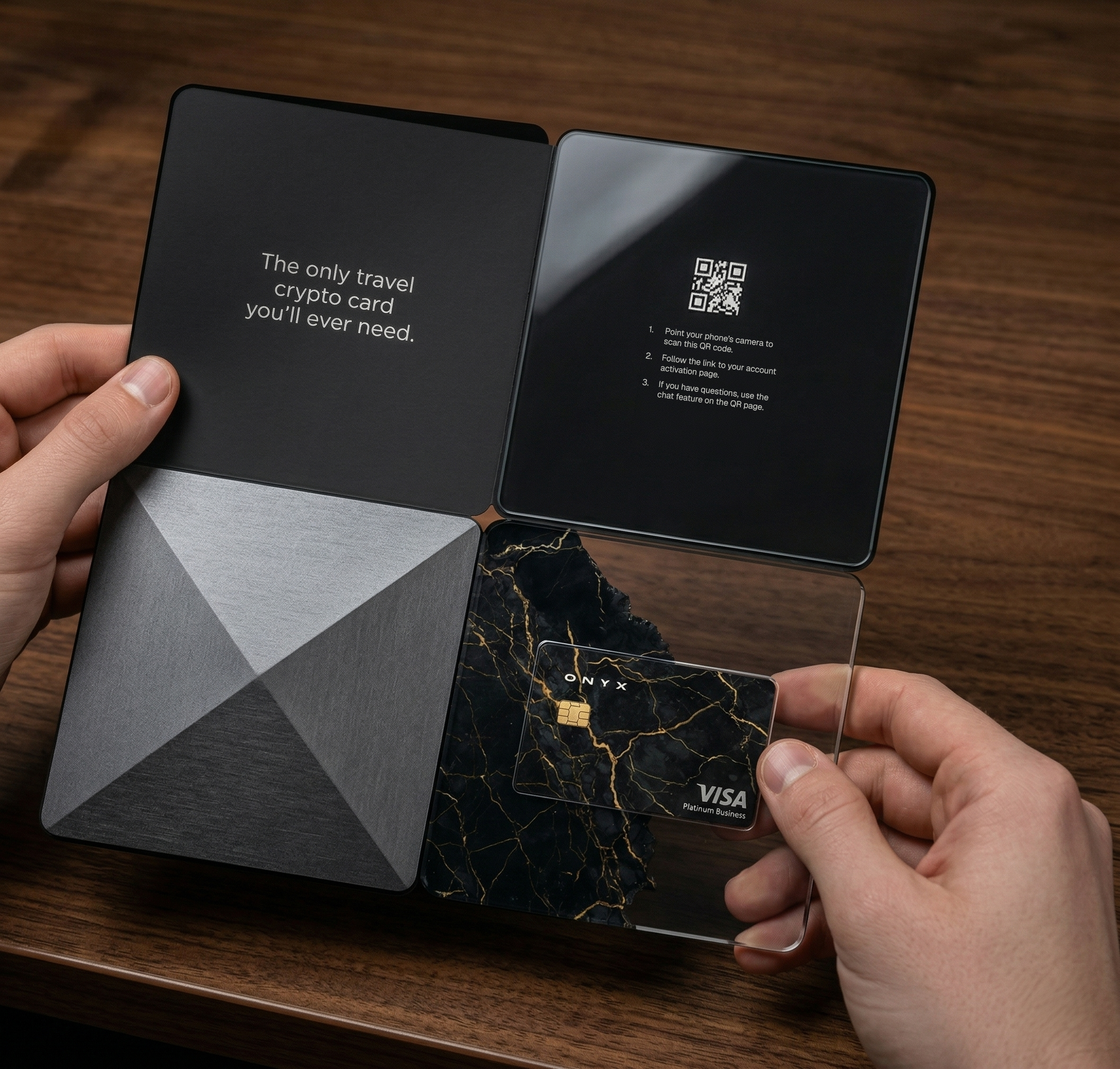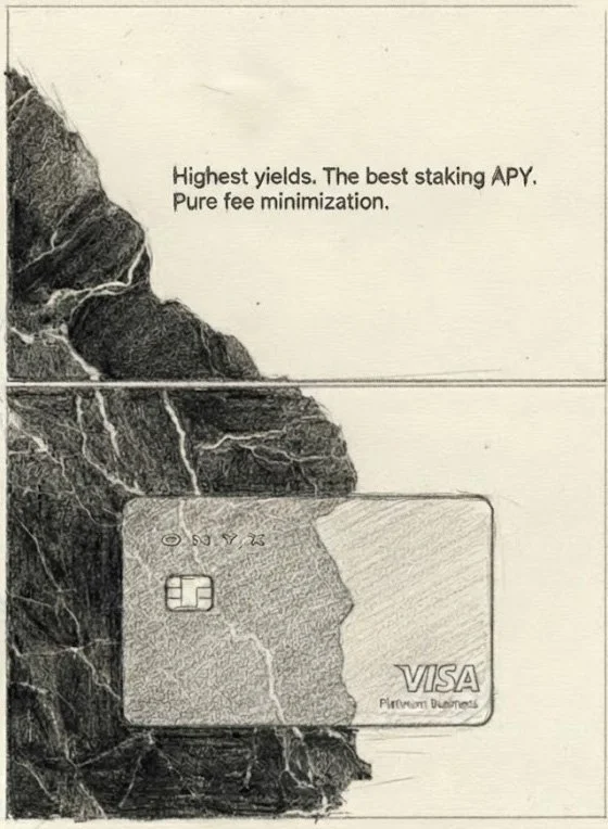 “The only travel crypto card you’ll ever need.” and "Tired of paying card fees? Onyx is free." is a claim someone can test.